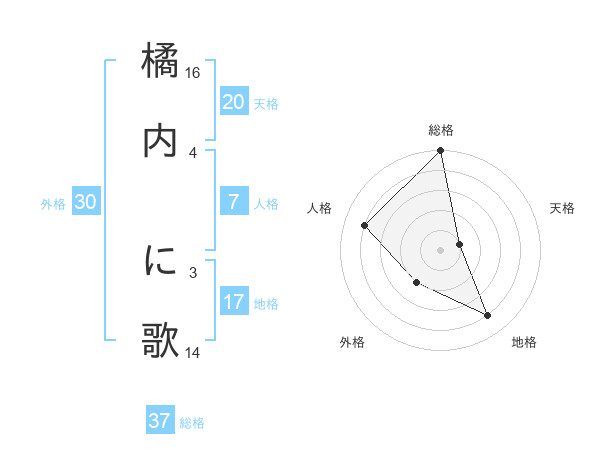 橘内 に歌さんを姓名の画数から五運を鑑定