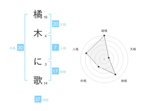 橘木 に歌さんを姓名の画数から五運を鑑定