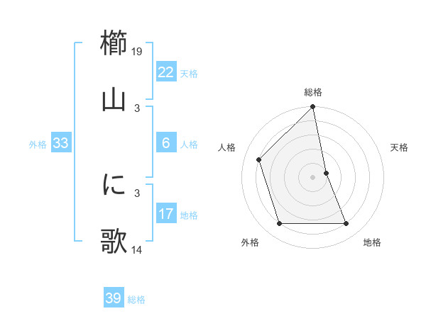 櫛山 に歌さんの総格は39画の5点!