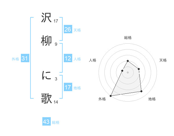 沢柳 に歌さんの総格は43画の2点!