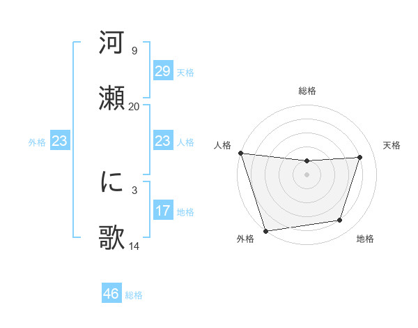 河瀬 に歌さんを姓名の画数から五運を鑑定