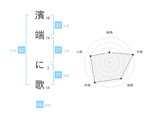 濱端 に歌さんの総格は49画の2点!
