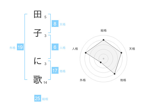 田子 に歌さんの総格は25画の4点!