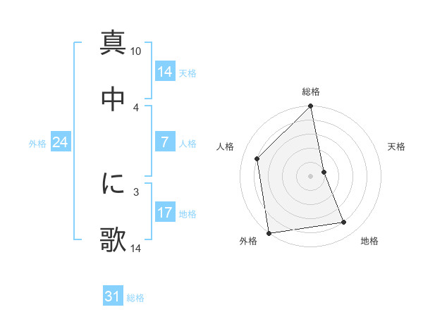 真中 に歌さんの総格は31画の5点!