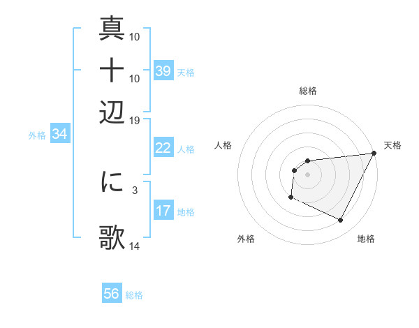 真十辺 に歌さんの総格は56画の1点!
