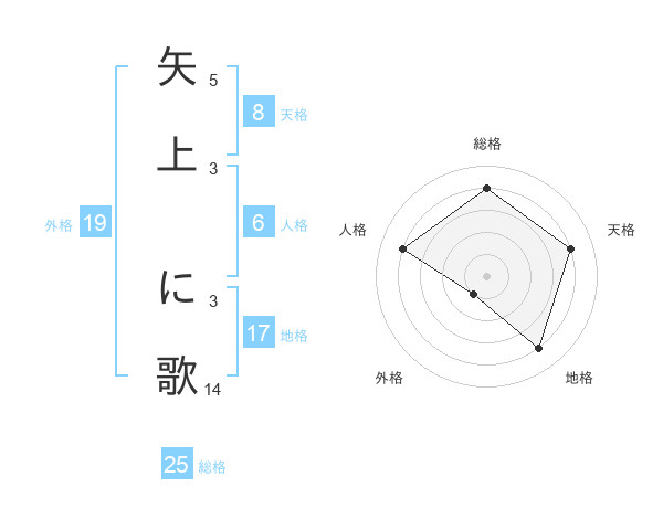 矢上 に歌さんの総格は25画の4点!