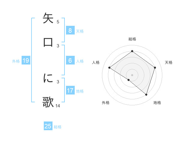矢口 に歌さんを姓名の画数から五運を鑑定
