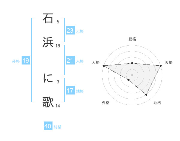 石浜 に歌さんの外格は19画の1点!