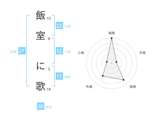 飯室 に歌さんを姓名の画数から五運を鑑定