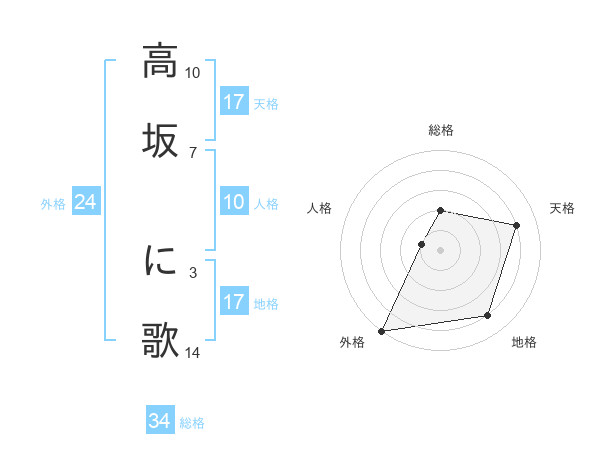 高坂 に歌さんを姓名の画数から五運を鑑定