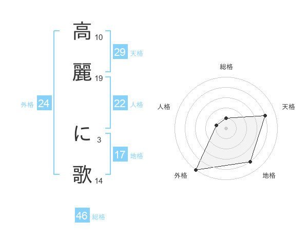 高麗 に歌さんの総格は46画の1点!