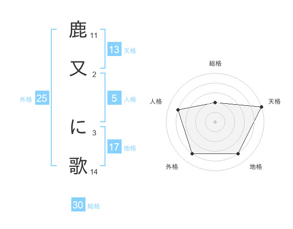鹿又 に歌さんの外格は25画の4点!