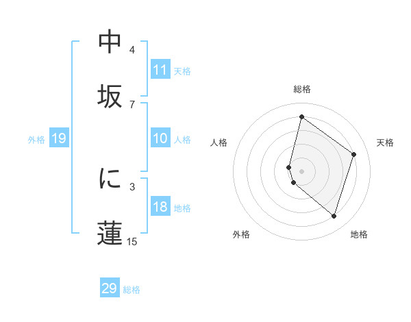 中坂 に蓮さんの総格は29画の4点!