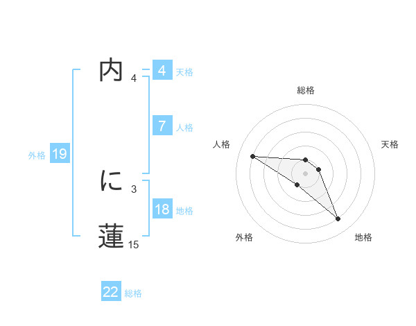 内 に蓮さんの総格は22画の1点!