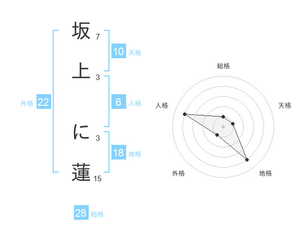 坂上 に蓮さんの外格は22画の1点!