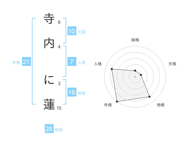 寺内 に蓮さんを姓名の画数から五運を鑑定