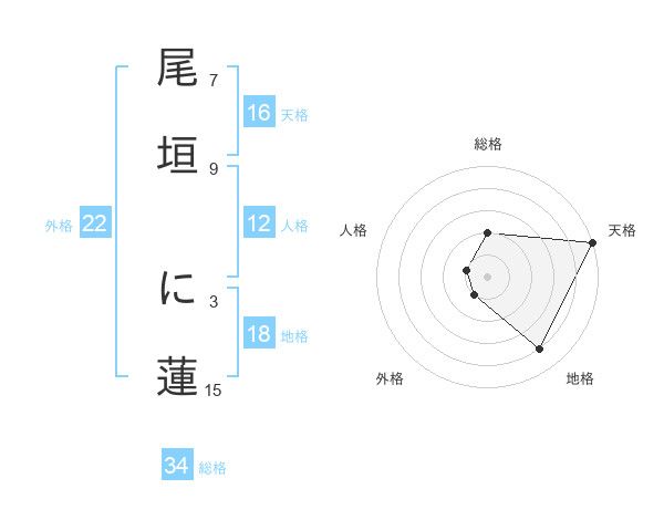 尾垣 に蓮さんを姓名の画数から五運を鑑定