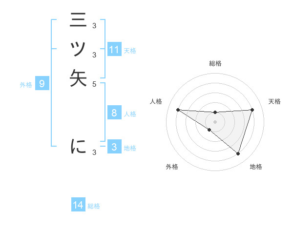 三ツ矢 にさんを姓名の画数から五運を鑑定
