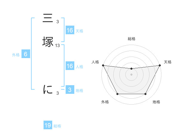 三塚 にさんの天格は16画の5点!