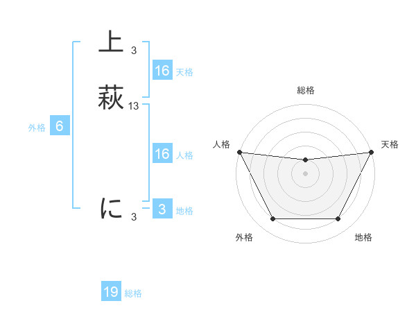 上萩 にさんの天格は16画の5点!
