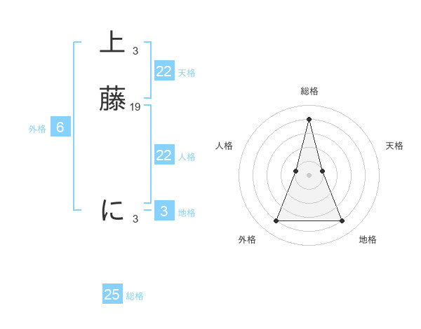 上藤 にさんの天格は22画の1点!