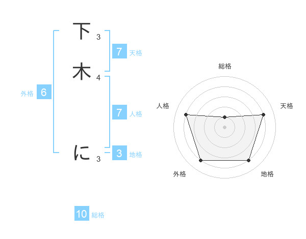 下木 にさんの総格は10画の1点!
