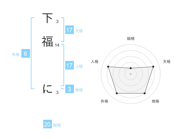 下福 にさんの天格は17画の4点!
