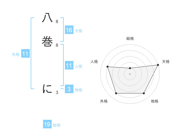 八巻 にさんの外格は11画の4点!