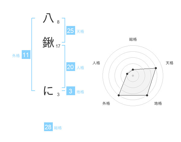八鍬 にさんの外格は11画の4点!