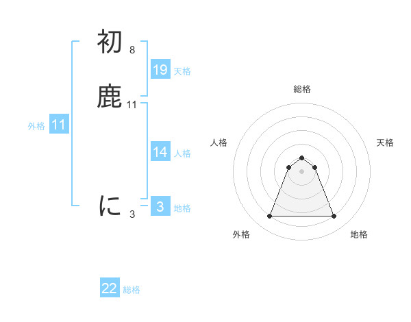 初鹿 にさんの総格は22画の1点!