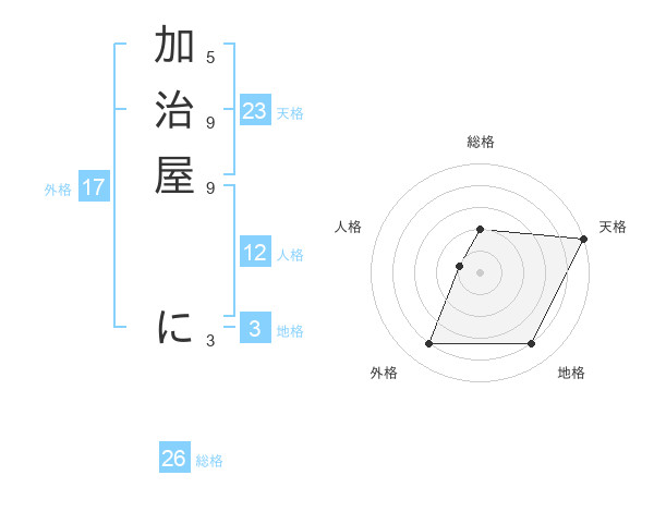 加治屋 にさんの天格は23画の5点