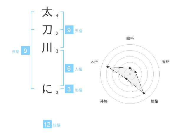 太刀川 にさんの総格は12画の1点!