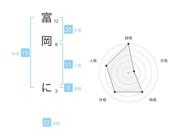 富岡 にさんの天格は20画の1点!