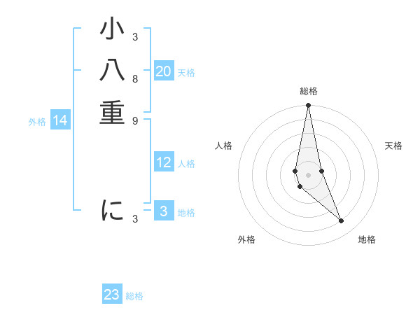 小八重 にさんの総格は23画の5点!