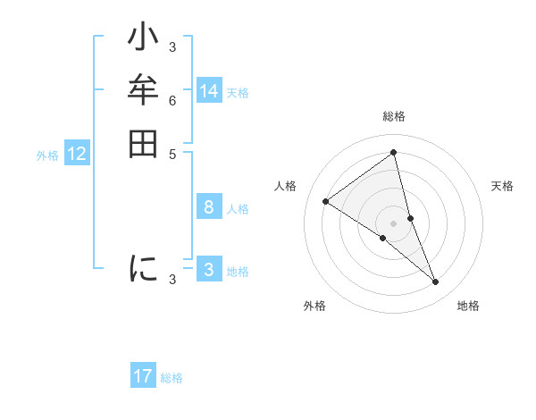 小牟田 にさんの総格は17画の4点!
