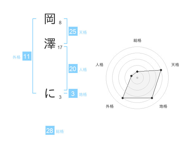 岡澤 にさんの外格は11画の4点!