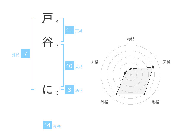 戸谷 にさんの総格は14画の1点!