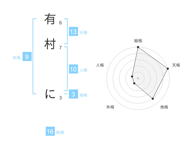有村 にさんの天格は13画の5点!