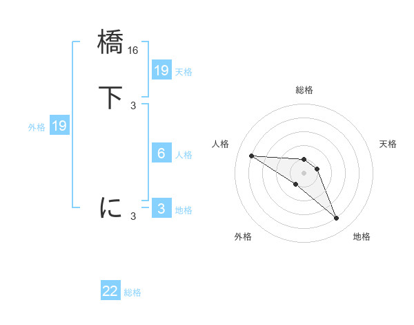 橋下 にさんの外格は19画の1点!
