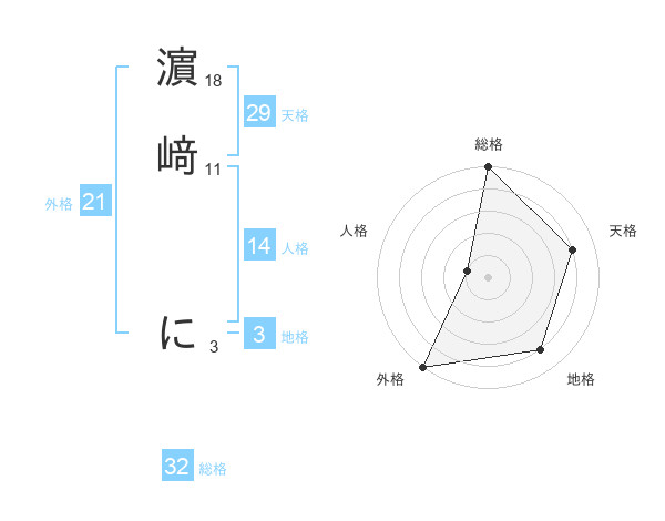 濵﨑 にさんの総格は32画の5点!