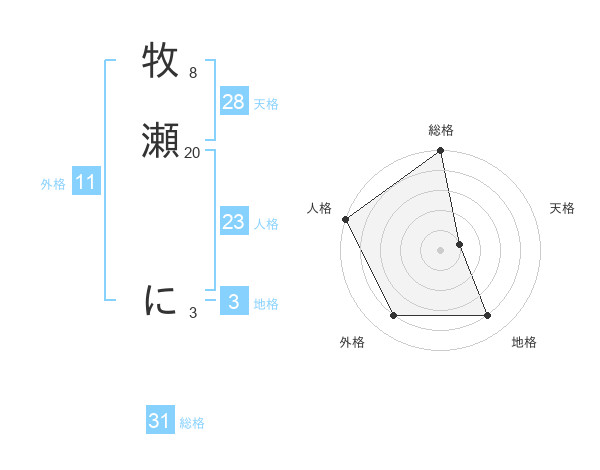 牧瀬 にさんの総格は31画の5点!