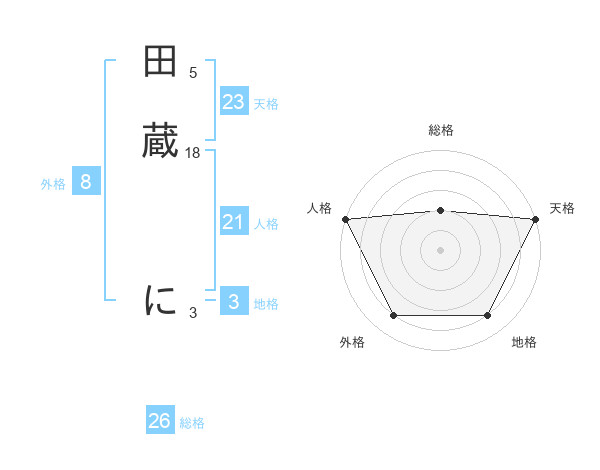 田蔵 にさんの天格は23画の5点!