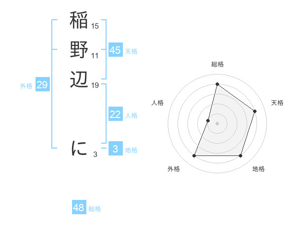 稲野辺 にさんの天格は45画の4点!