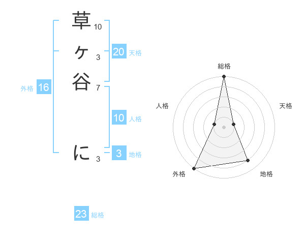 草ヶ谷 にさんの総格は23画の5点!
