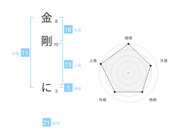 金剛 にさんの総格は21画の5点!