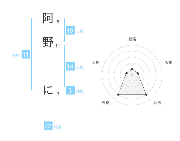 阿野 にさんの外格は11画の4点!
