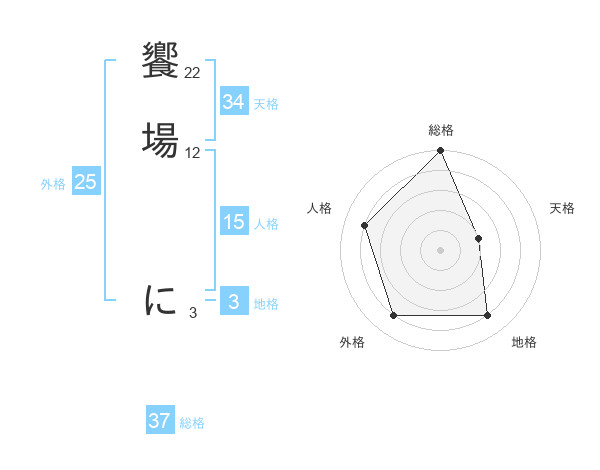 饗場 にさんの総格は37画の5点!