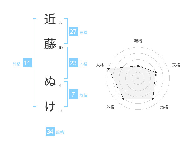 近藤 ぬけさんを姓名の画数から五運を鑑定