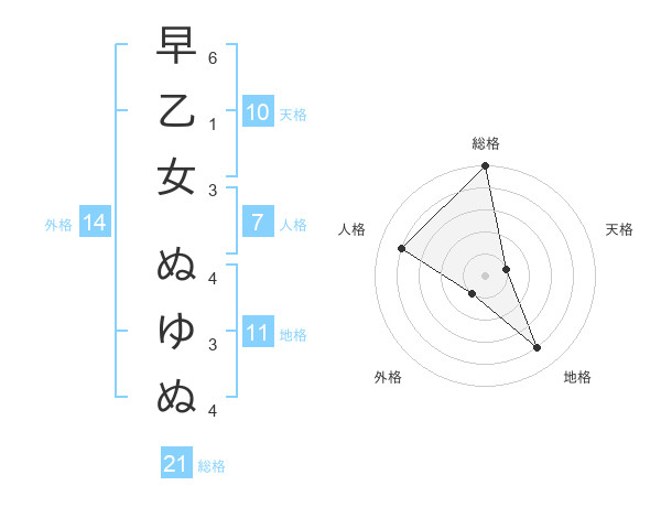 早乙女 ぬゆぬさんの総格は21画の5点!