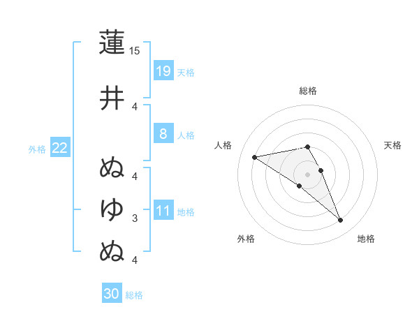蓮井 ぬゆぬさんの外格は22画の1点!